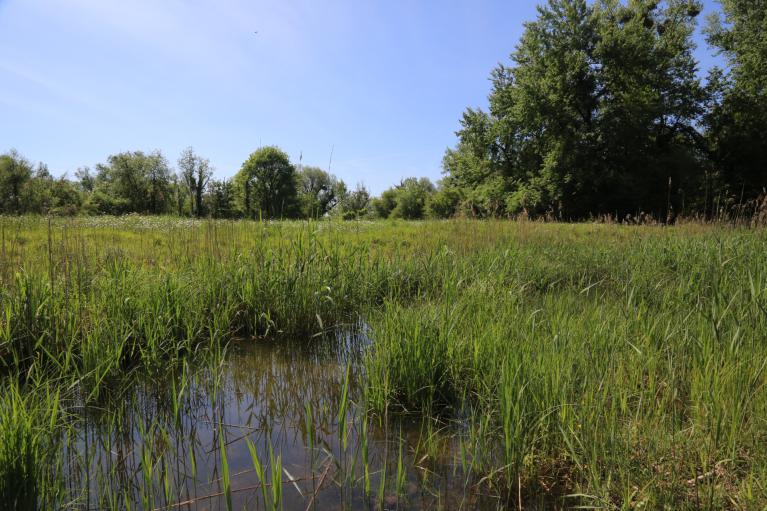 Plaine alluviale façonnée par les brassages du Rhin, le Ried offre des paysages veinés de réseaux d'eau, des bois et des zones humides riches d'une flore et d'une faune abondante.